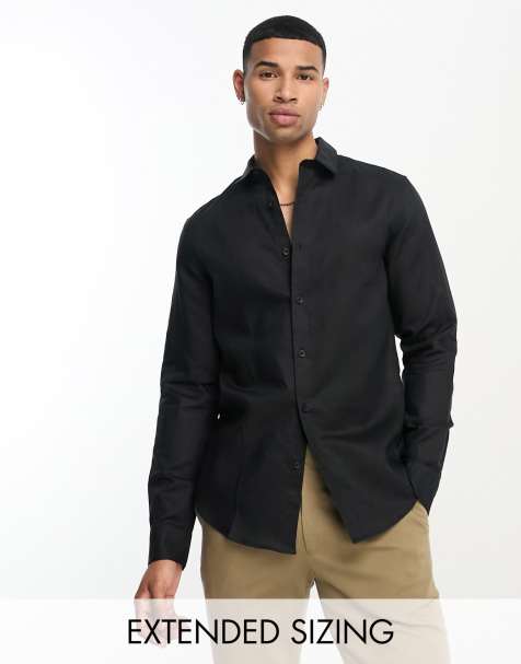 Product id: Camisa negra top lino hombre