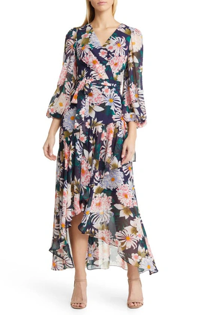 Product id: Eliza j ruffle sleeve top floral faux wrap dress