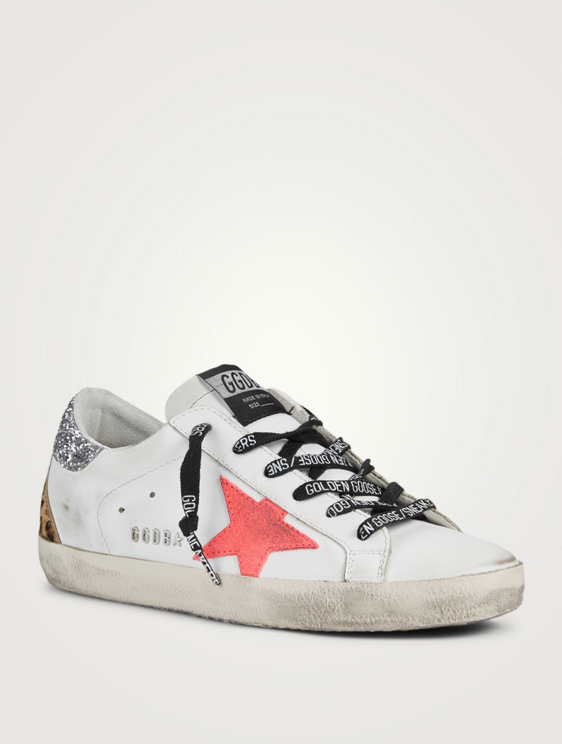 Golden goose top holt renfrew, Super Star Leather Sneakers With Glitter Leopard Print Heel Tab top