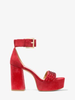 Product id: Michael kors tara floral top embellished leather platform sandal