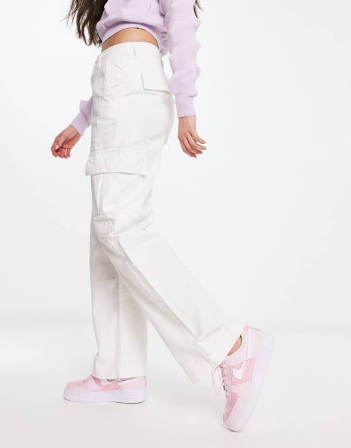 Product id: Womens white top cotton cargo pants